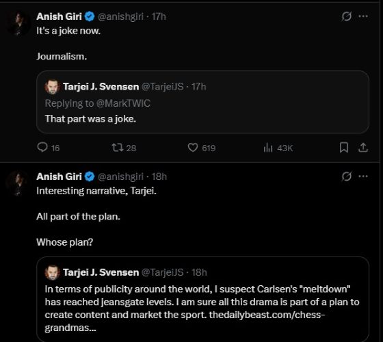 О том и речь и уверен нечего обидного или оскорбительного для Магнуса в этом нет, скажу больше к его поступку в партии с Гукешем отношусь менее жестко ,чем Вы ,понять и простить возможно, другое дело оправдывать не стоит.