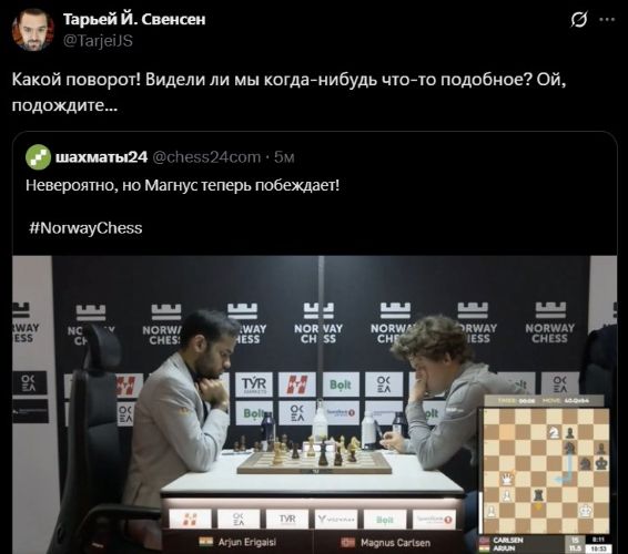 Я, например, написал, что Магнусу важно не проигрывать именно Гукешу. Как бы очевидно почему. Отсюда и эмоции после проигрыша индийцу.