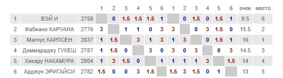 Невероятно напряжённый финальный раунд завершился победой Карлсена с минимальным отрывом от Каруаны и Гукеша. При этом разница между всеми пятью лидерами турнира была меньше, чем одно очко за победу в классической партии.