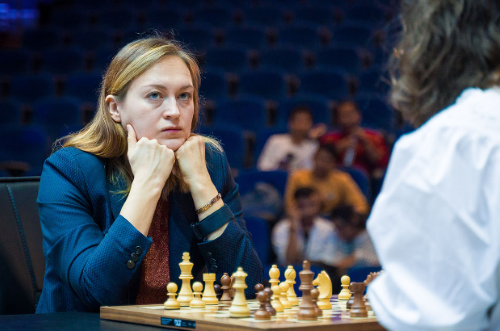 Музычук, игравшая белыми, допустила ошибку на 30-м ходу.