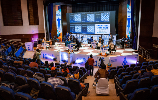 02.12.2022 — В четверг завершились рапид турниры по быстрым шахматам на турнире Tata Steel India Chess. Нихал Сарин продемонстрировал доминирующее выступление, заняв первое место после двух подряд побед над Шахрияром Мамедьяровым и Пархамом Магсудлу. Ранее в тот же день Анна Ушенина обыграла Нану Дзагнидзе на тай-брейке в блице и завоевала титул среди женщин. Photo: Lennart Ootes