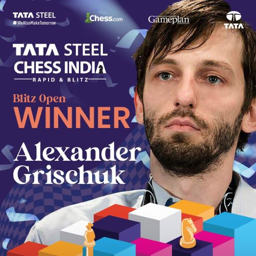 Congratulations to Alexander Grischuk on winning the #TataSteelChessIndia Blitz after a 7-move draw in the final round!