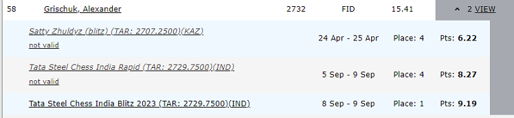 Кроме Грищука, ни одному из следующих четырех в блице (Абдусатторов, Прагг, Эригайси, МВЛ) турнир в зачет ФИДЕ-тура не пошел (у каждого был турнир по блицу или рапиду получше)