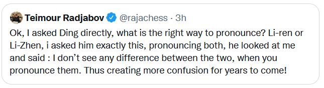 masterd: | FIBM:Думаю, что есть существенная разница. Одно дело «рядовой участник турнира претендентов» (тем более было не до конца понятно, будет Дин участвовать или нет), а другое дело «матч за звание ЧМ». | Именно так. Под рядового претендента денег не дали бы, а под участника матча, который можно провести именно в Китае - дадут деньги. |