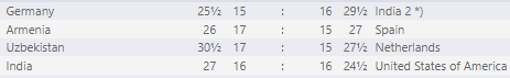 Перед началом турнира решил, что буду болеть за Индию-2. Там играет персонаж (Раунак, 5 доска), с которым я вместе выиграл парный блиц в Гибралтаре в 2018 году. Разумеется, против Америки. Ну и за женскую команду Украины - увы, шансов у них немного...