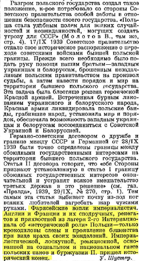 Видимо, в те непростые времена на ввод советских войск на территорию Зап. Украины и Белоруссии смотрели иначе, чем сейчас. Франция и Великобритания были связаны с Польшей договором. Когда Германия напала на Польшу они, в соответствии с договором, объявили войну Германии. Нам никто никакой войны не объявлял, наверно потому, что правительство Польши уже сбежало из страны и она потеряла свою субъектность.