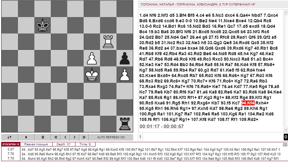 Горячкина без пешки с Погониной, но шансы на ничью не потеряны.