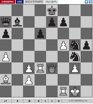 "Иду на Вы!" - Даниил Дубов разыграл черными против Евгения Наера вариант дракона! В его современной интерпретации, с движением крайних пешек (h7-h5 и а7-а6) в ответ на расстановку белых в духе атаки Раузера. Евгений Наер вызов принял и весьма амбициозно начал наступление на королевском фланге. Однако затем напрасно соблазнился пешкой b6 - после этого инициатива перешла к черным. Дубов пожертвовал вторую пешку, а потом еще и качество и нацелил все фигуры на неприятельского короля. На 25-м ходу белые допустили решающую ошибку, после чего их король попал в матовую сеть. Финальная позиция могла оказаться очень эффектной: три легкие фигуры матуют неприятельского короля, которому не помогают лишние ферзь и две ладьи, однако Наер предпочел сразу признать свое поражение.