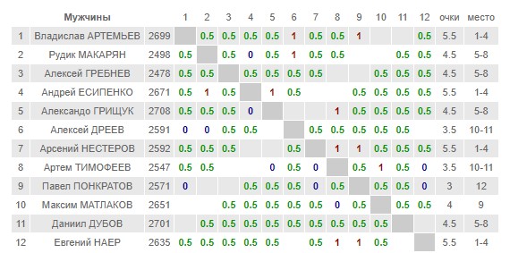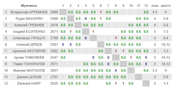 У Дубова с Понкратовым ничья. Отличная боевая партия. А Грищук сдался.