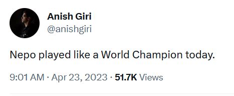 Магнус, говорят, пьёт в баре пиво и за партиями не следит. Впрочем, может он следит за твиттером Гири.