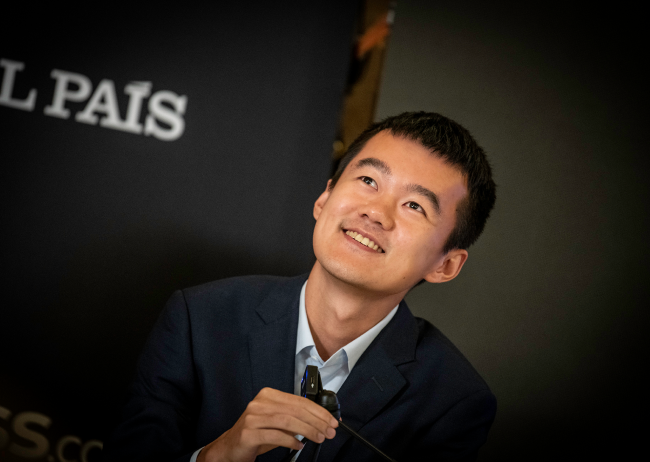 Ding: "I am quite relieved. The moment Ian resigned the game, it was a very emotional moment. I could not control my mood, my feelings. I know myself, I will cry, burst into tears. It has been quite a tough tournament for me. I'd like to thank my friends."