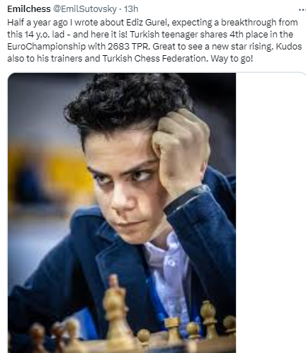 | С победителем ЧЕ я по существу не знаком, но в одних рапидоблицах играть доводилось. Оставил впечатление воспитанного и доброжелательного молодого человека, впрочем, для поколения рождённых в РФ в девяностых-нулевых (то есть формировавшихся как личности в нулевых-десятых) это довольно типично. Каким-то будет поколение, которому предстоит формироваться в двадцатые... |