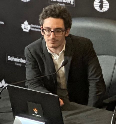 | Фабиано Каруана взял мышку и начал анализировать еще до начала пресс-конференции. Понятно, что он опустошен. |