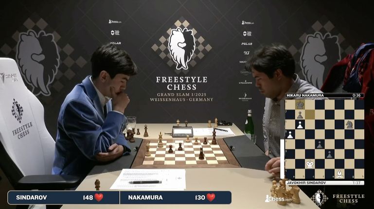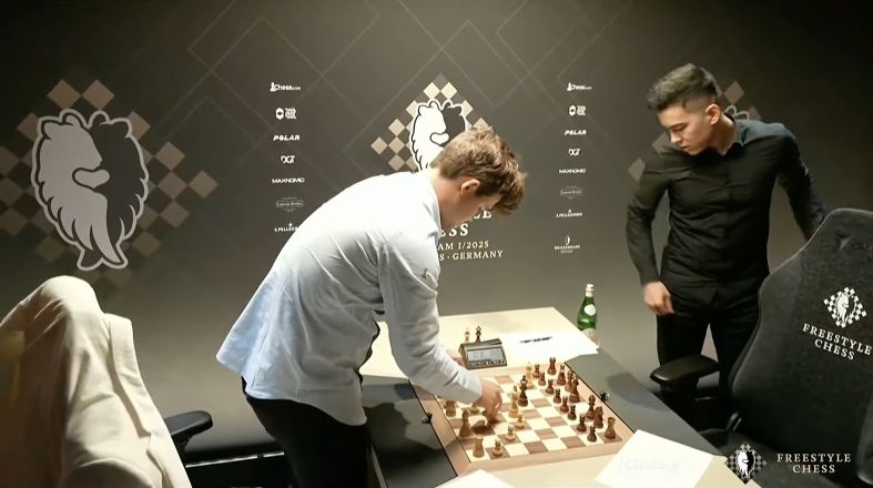 Магнус Карлсен выходит вперед , выиграв первую партию четвертьфинала у Нодирбека Абдусатторова!