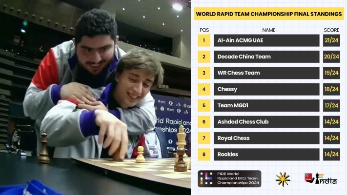 Команда Al-Ain ACMG UAE - чемпионы командного чемпионата мира по рапиду 2024! Набрав 21/24 очка, они заняли первое место. В заключительном туре Team Al-Ain одержала победу над Theme International Trading со счетом 3,5-2,5 - решающую победу на первой доске одержал Даниил Дубов!