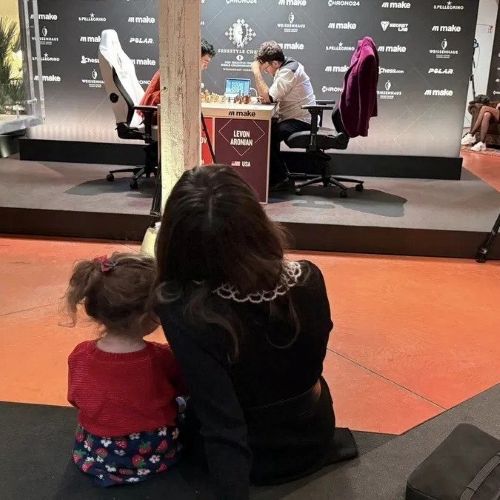Вчера на чемпионате мира по фристайл-шахматам за Левоном Ароняном наблюдали два его болельщика: жена Ани и дочь Забел. Мы оставили наше сердце на этой фотографии.