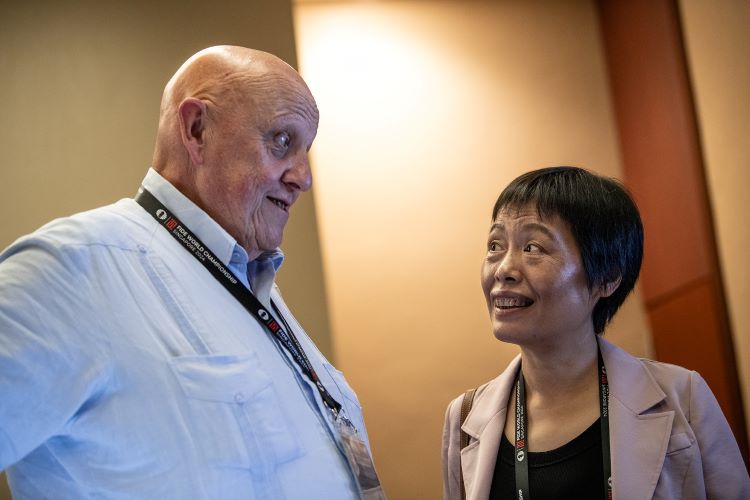 Оба родителя Динга находятся в Сингапуре, здесь, на церемонии открытия (с отцом Гукеша на заднем плане!)