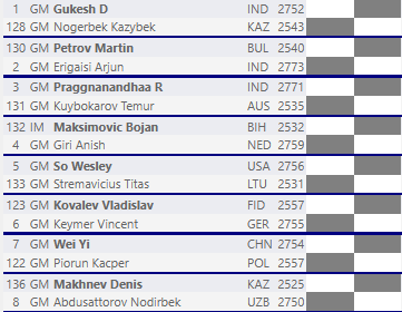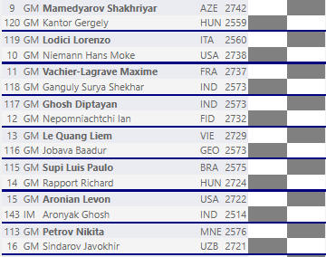 — Кстати, пару лет назад он выбил Салема Салеха на Кубке мира и дошёл до четвёртого раунда. Его пиковый рейтинг около 2650 — серьёзный противник, и победа над ним многое говорит о вашей игре.