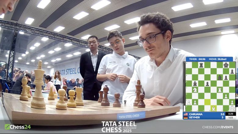 Вэй И и Фаустино Оро наблюдают, как Каруана получает выигрышную позицию против Кеймера!