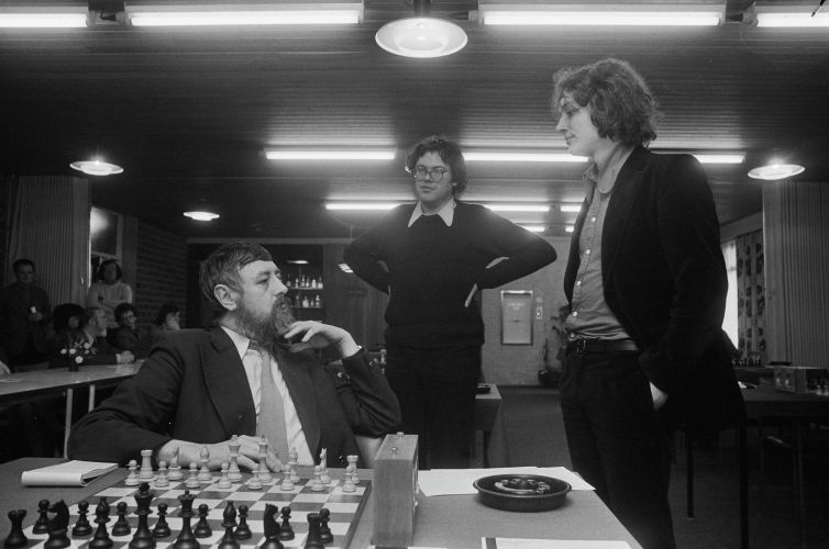Полвека назад сегодня, перед началом игры в 3-м туре в Вейк-ан-Зее 1975 - Хайн Доннер, Ханс Ри и Ян Тимман.
