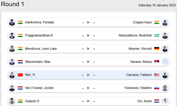 17 января 2025 года правительство Индии вручит Гукешу высшую спортивную награду страны — награду Major Dhyan Chand Khel Ratna. Турнир Tata Steel Masters 2025 в Вейк-ан-Зее должен начаться 18 января, и Гукеш получит награду и сразу же отправится на свой первый турнир в этом году. Он прибудет в Вейк-ан-Зее за несколько часов до первого тура и встретится с Анишем Гири.