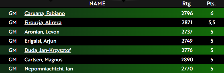 Фабиано Каруана - единственный игрок с идеальным результатом, победивший Арджуна Эригайзи в 6-м раунде!