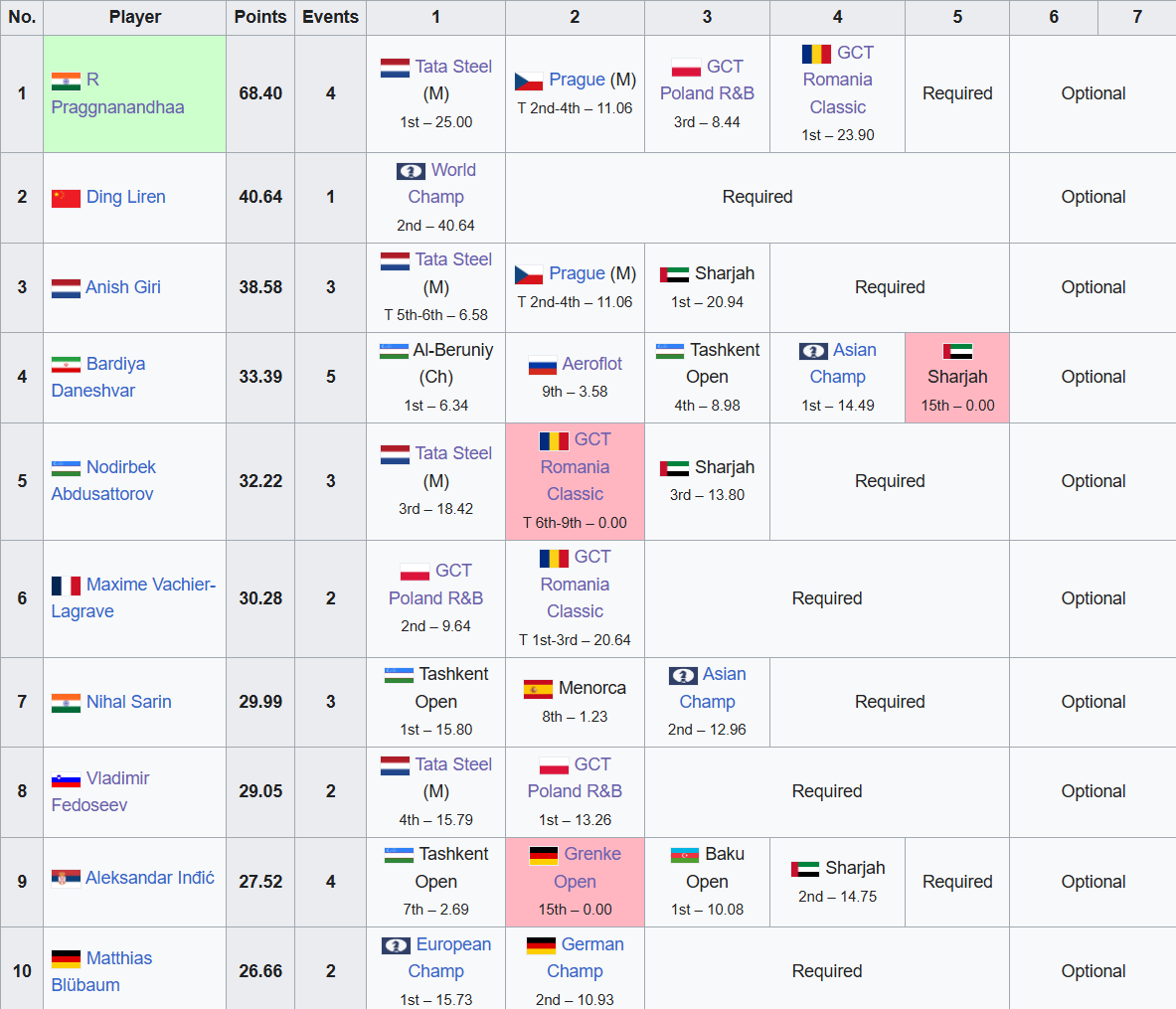 Победа на турнире Chennai Grand Masters практически гарантировала бы место в турнире претендентов любому из них, и, как оказалось, именно Гукеш обогнал Арджуна по дополнительным показателям после того, как они разделили первое место, что позволило ему стать лидером рейтинга Circuit.