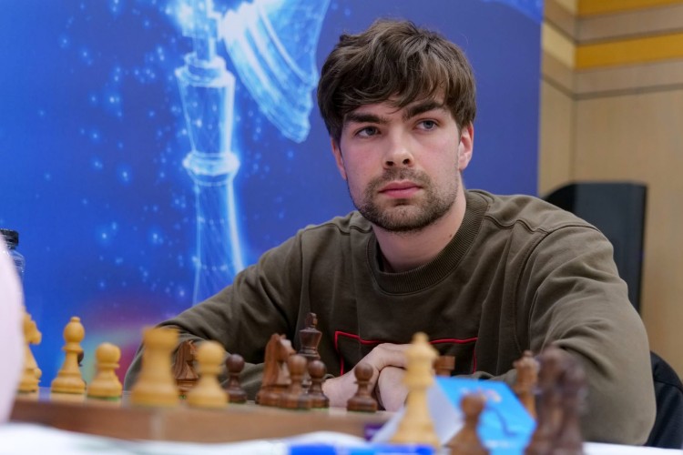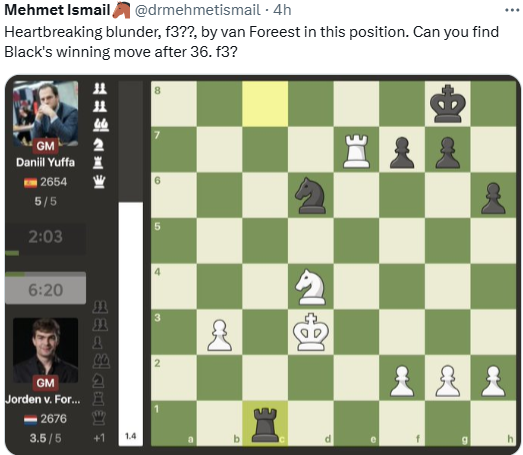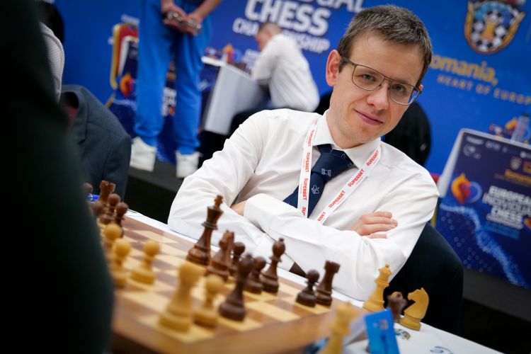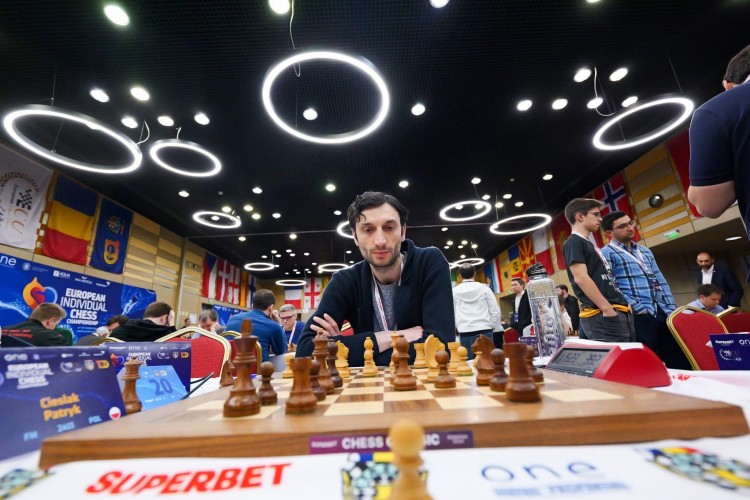 Гроссмейстер Даниил Юффа 🇪🇸 одерживает победу над гроссмейстером Мисратдином Искандаровым 🇦🇿 и выходит в единоличные лидеры на Чемпионате Европы по шахматам 2025, став единственным игроком с идеальным результатом 4/4!