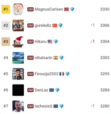 Левон Аронян, Фабиано Каруана, Алиреза Фируджа, Аниш Гири, Винсент Каймер, Праггнанандхаа Р., Максим Вашье-Лаграв