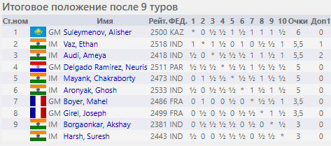 Казахский гроссмейстер Алишер Сулейменов стал победителем турнира Chola Chess GM Norm Round Robin! В последнем туре Алишер сыграл вничью с международным мастером Амейей Ауди в упорной партии, обеспечив себе победу в турнире с результатом 6 из 9 очков.