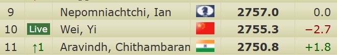 Кажется уже сто раз говорили до меня что лайв рейтинг не имеет никакого значения,он ничего не стоит, 2750 будут таковыми по факту только если Аравинд удержит эту отметку вплоть до завершения турнира.К чему с упорной настойчивостью пытаться преподнести как достижение то чего таковым не является.И Гири не был восьмисотником никогда.