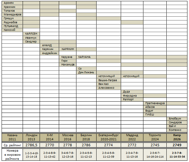 В целом, я думаю, что Фаби и Хикару относятся к первому уровню. Прагг и Аниш — ко второму. Что касается остальных игроков, я не думаю, что у них есть опыт участия в отборочных этапах, а это очень важно.