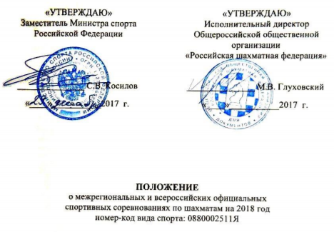 Межрегиональные и всероссийские официальные спортивные соревнования по шахматам на 2018 год