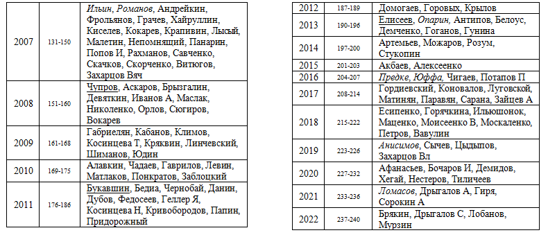 А уехавших и не возвращавшихся не 24, а 22 (ещё как-то обмишурился со Злочевским, который давным-давно вернулся из Италии) |