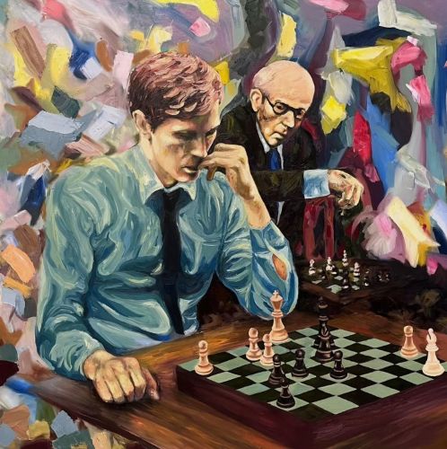Уважение к великому Мастеру (Бобби Фишер),масло на холсте, 100 × 100 см.