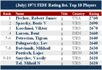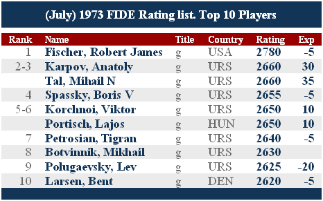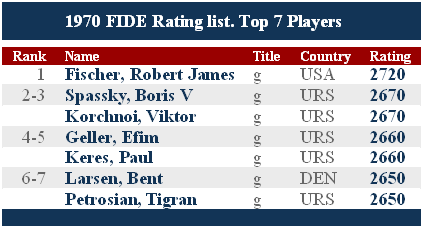Здесь будут размещены исторические рейтинг листы ФИДЕ, начиная с 1970г.