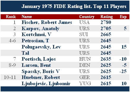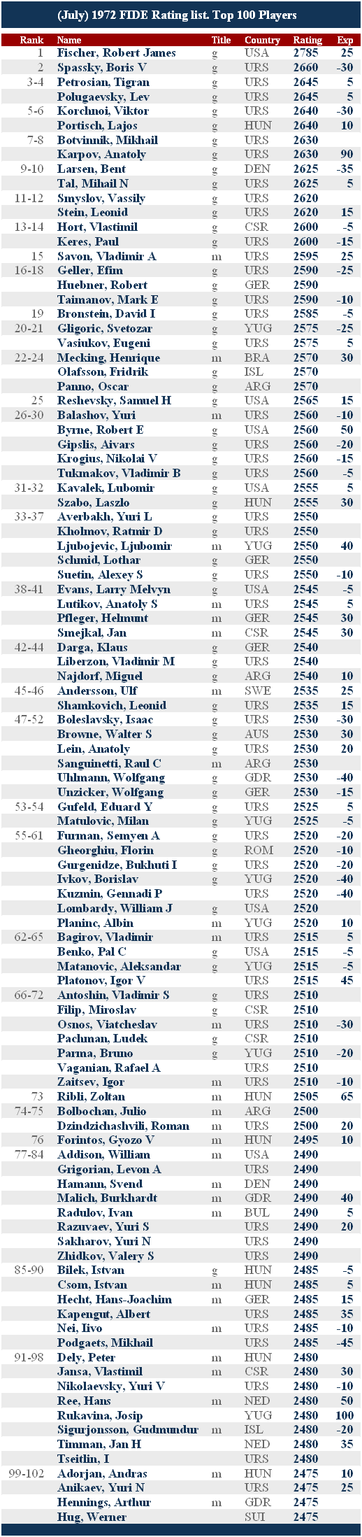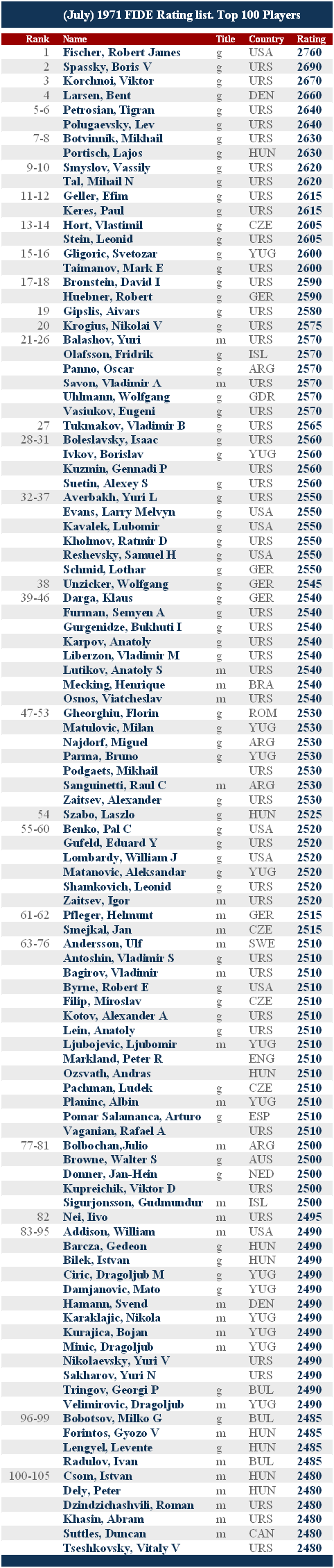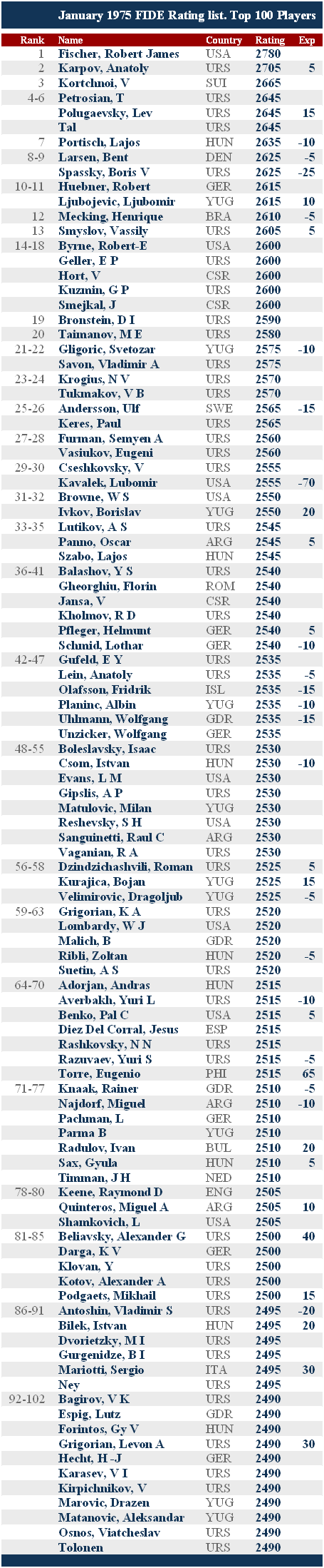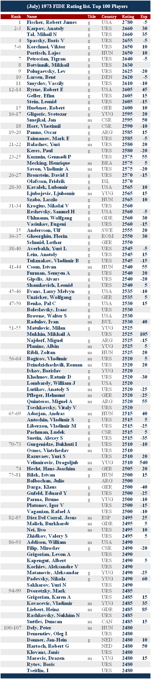 Завтра будет Топ список гроссмейстеров, чье превосходство над первой тридцаткой каждого обсчета было наиболее выраженным за период 07.1971 – 01.1976.