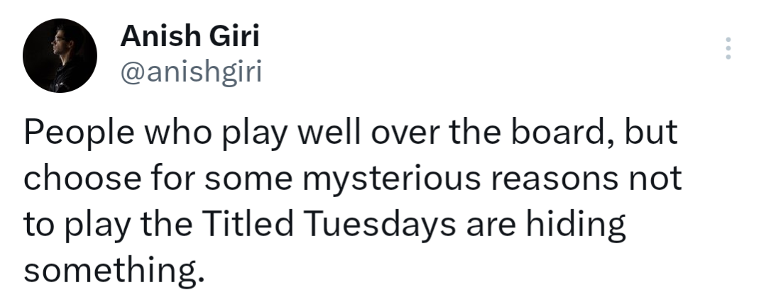 В наших кругах никто не сомневается, что онлайн-читерство - крайне распространённый феномен ("каждый второй время от времени" Каруаны - оценка, близкая к консенсусной). Поэтому "чаще попадать в цель" при мишени таких размеров нетрудно, можно вообще не целиться, а просто стрелять в правильную сторону Но конкретно обвинять тех или иных игроков - это совсем другое дело. |