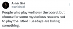 Бортник 2 раза был 4-м в один день. В раннем победил молодой иранец(тут ошибся- индиец Пранав) и в призах (или около) было очень много молодых (до 20 лет). А вот в тот же день в позднем победил уже Магнус. И в обоих случаях Жоспема в призах не было (хотя около десятки). Могу ошибаться в деталях.