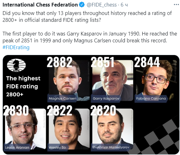 | В списке высших пиковых достижений за карьеру Ян Непомнящий (2789) перемещается с 20-й строчки (между Фишером и Карповым) на 16-ю, опережая Морозевича и Карякина (2788) и располагаясь сразу за главными недовосьмисотниками Гири (2798) и Раджабовым (2793) |