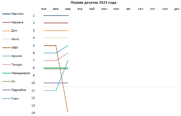 Я бы экстрапольнул график и до апреля, но у Р.Раппорта будет возможность (в австрийской Бундеслиге) к апрелю подняться в Топ-10 (раньше, чем это получится у Фирузджи, которому пока играть негде)