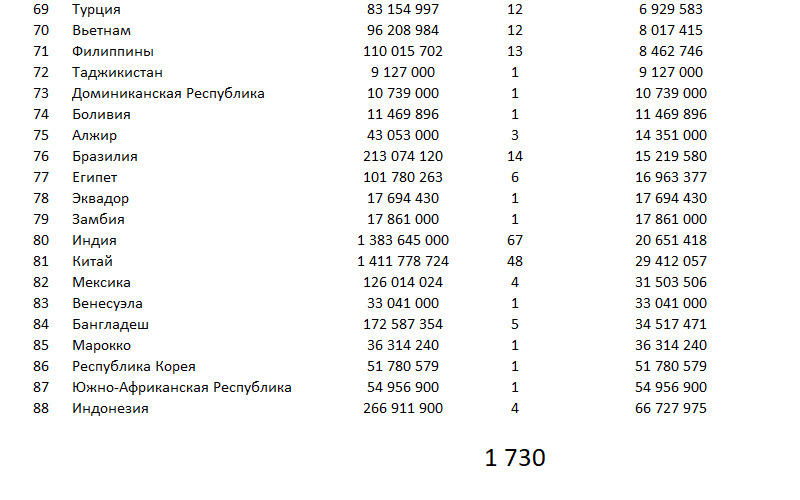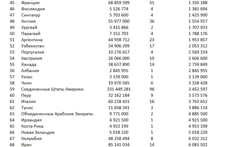 muran29: Есть такая статистика 1 ГМ из численности населения страны?
