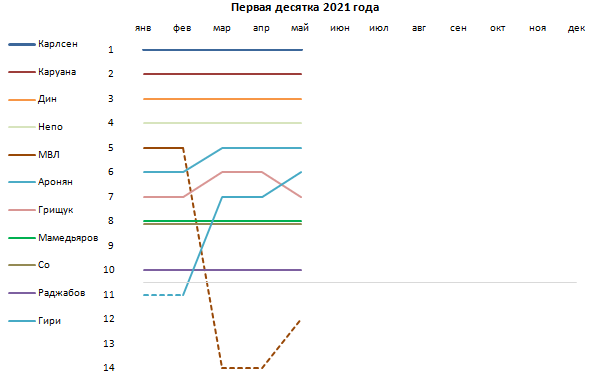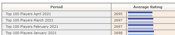 Никто из первой сотни не играет - негде. Никто не играет из первой сотни, с марта по апрель практически ноль партий на всех, но при этом "средний рейтинг Топ-100" внезапно драматически упал на целых 2 пункта. (средний! на 2 пункта!)