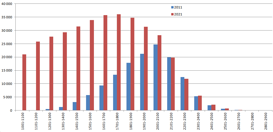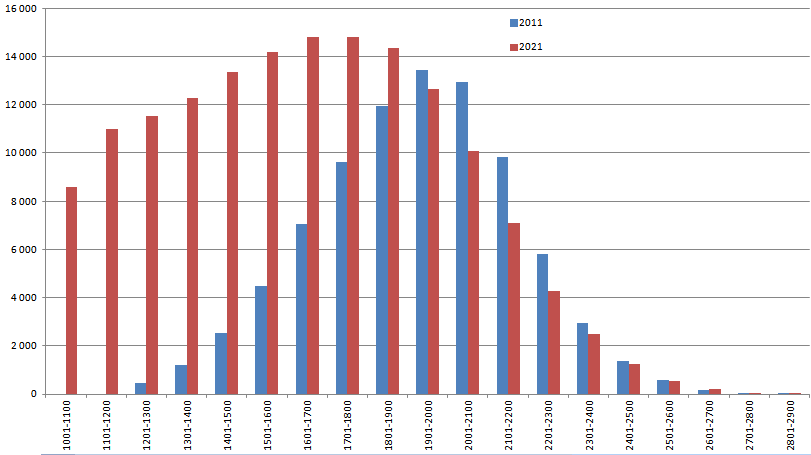 Снизилось, разве что, количество 2200-2300, возможно, волна пока дошла только до этого уровня.
