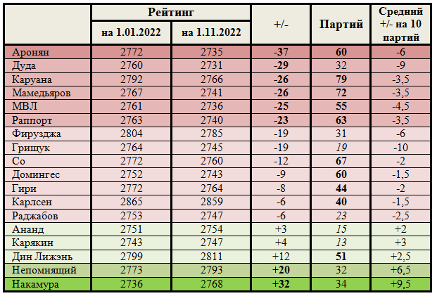 Из 18 топ-игроков 13 (!) потеряли в рейтинге с начала года (кто больше, кто меньше).