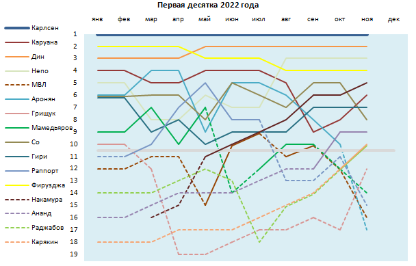(Минимальные перестановки в топ-десятке ещё возможны, но Карякин и Раджабов точно вступят в новый год в Топ-10)