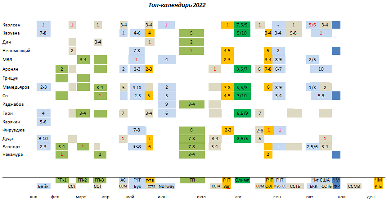 Собирался по концу года возобновить, наконец, традиционную таблицу "Как играла между собой топ-десятка в уходящем году", но с Анандом, Карякиным и Раджабовым - вместо Ароняна, Мамедьярова, МВЛ или Раппорта - она будет такой же пустой и бессмысленной, как и в два предыдущих пандемийных года. |