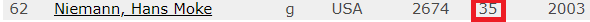 35 партий сыграны Ниманном за 33 дня - с 27.05 по 28.06. Первые восемь (с 9-го тура снялся) в Дубаи-опен, затем перелёт через океан - и три опена в США подряд.
