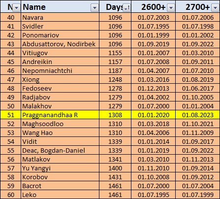 Из первой группы - 3 уже вошли (Deac, Praggnanandhaa,Keymer), причем двое последних достаточно уверенно. 3 на расстоянии одной партии от 2700 (Sevian, Sarana, Sarin). Shevchenko & Niemann пока совсем не там, а Синдарова я брал изначально "на вырост".
