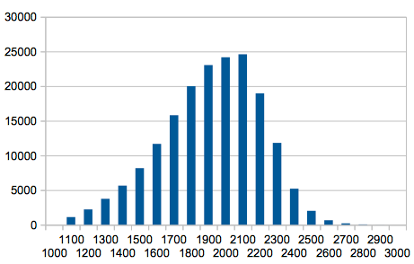Ещё раз (почётче) - распределение рейтинга ФИДЕ ("мужского")